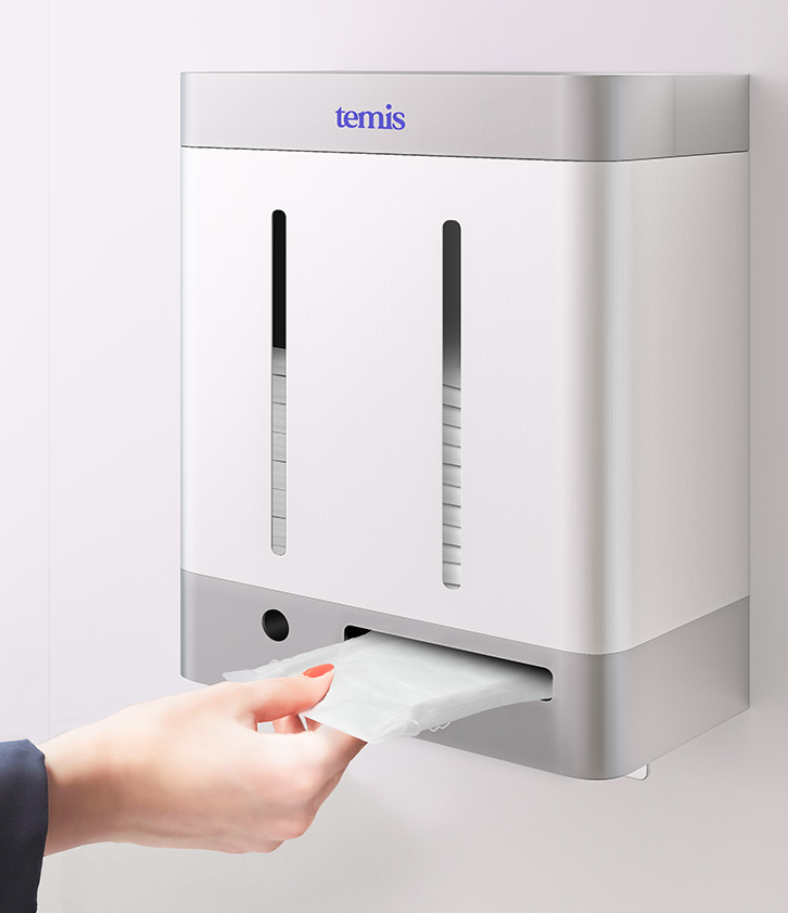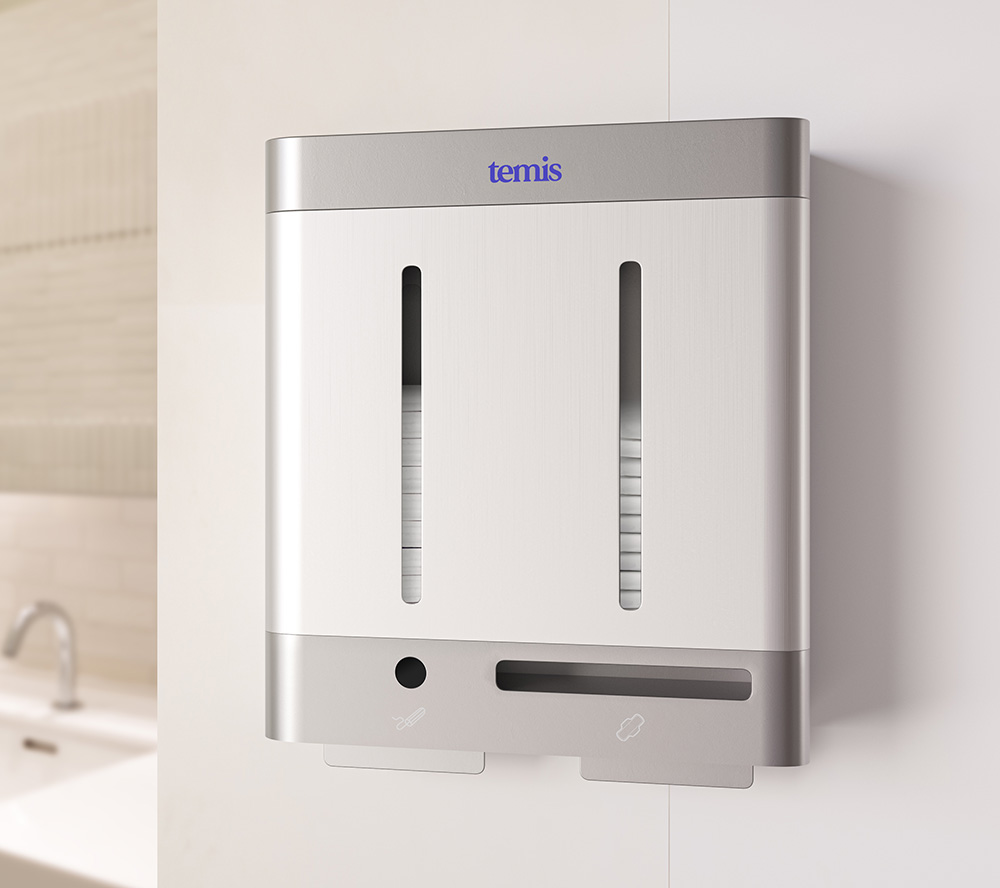 Diseñado para complementar cualquier espacio de manera elegante y funcional, nuestro dispensador asegura el acceso constante de productos menstruales, gracias a su fácil instalación y recarga.