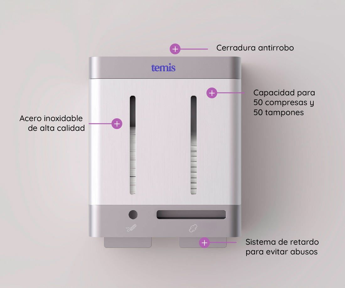 Ofrecemos dispensadores de compresas y tampones a través de un modelo de suscripción enfocado a empresas y universidades.
